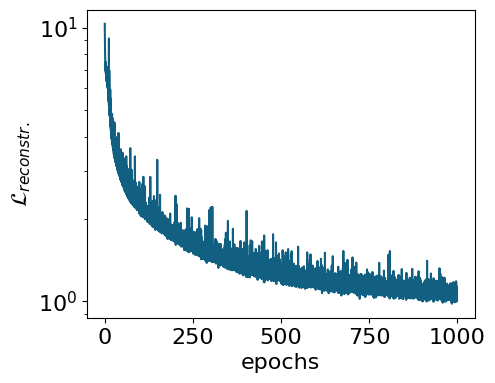 myvaetrainer.train(num_epochs=num_epochs, batch_size=10000, beta=0.65, gamma=0., key=key, printing_rate=50, re_shuffle=True)Start training...