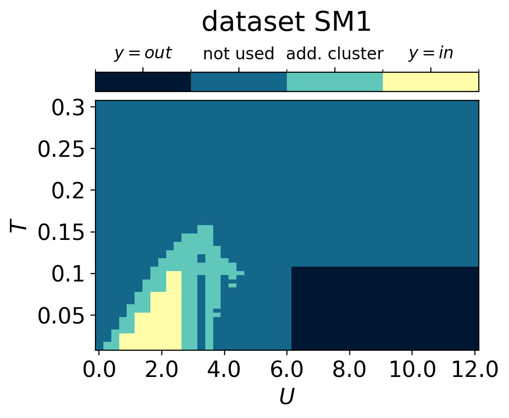 cbar.set_ticklabels([r'$y=out$', r'not used', r'add. cluster',r'$y=in$'], fontsize=12)