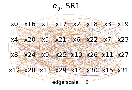 mySR.plot_alpha(topology=topology, edge_scale=10, name='SR1', threshold=0.35)